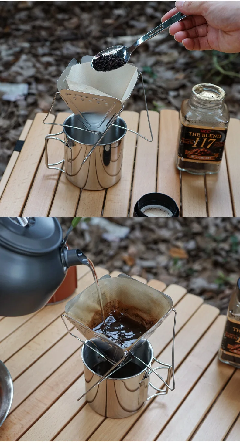 A Forty Winks Favourite. Savour the simplicity of brewing a rich, pure cup of coffee with the Outdoor Coffee Drip Stand. Designed for the coffee enthusiast who seeks a touch of comfort in the great outdoors, this stand allows you to enjoy an "easygoing afternoon" with every brew. (Note: Filter paper is sold separately.)