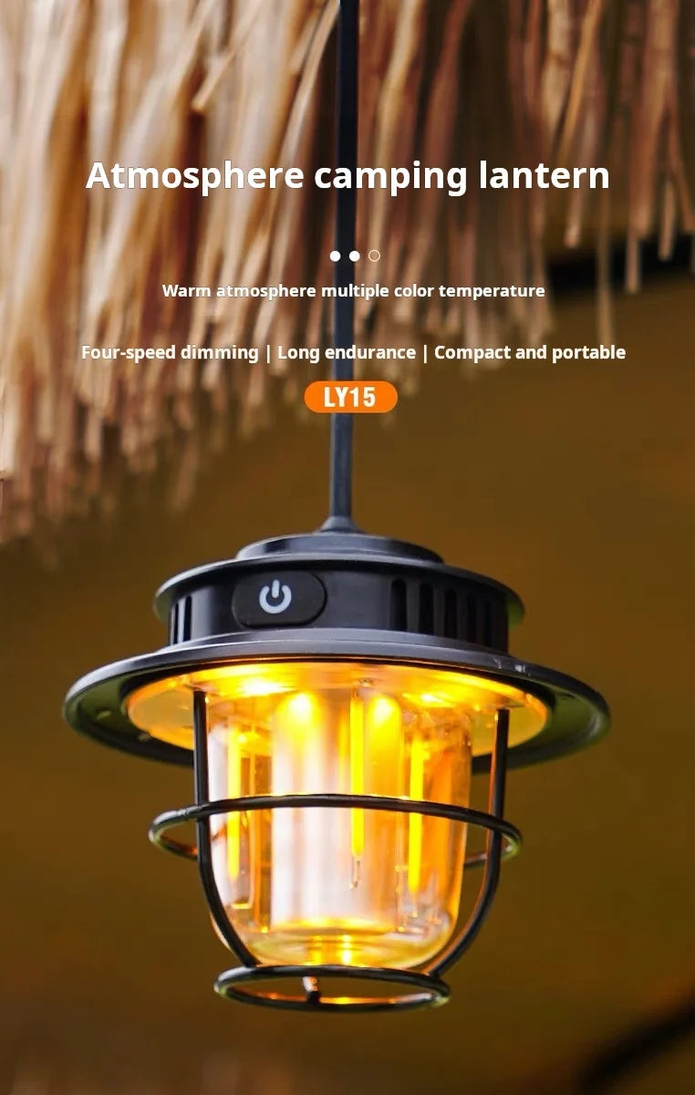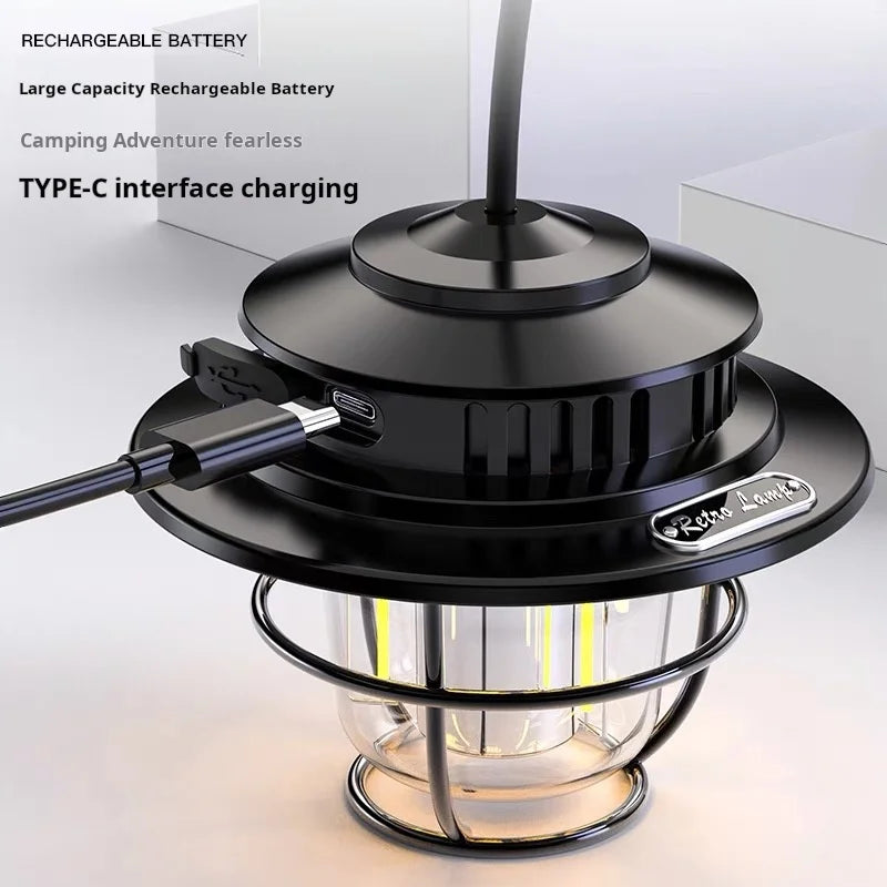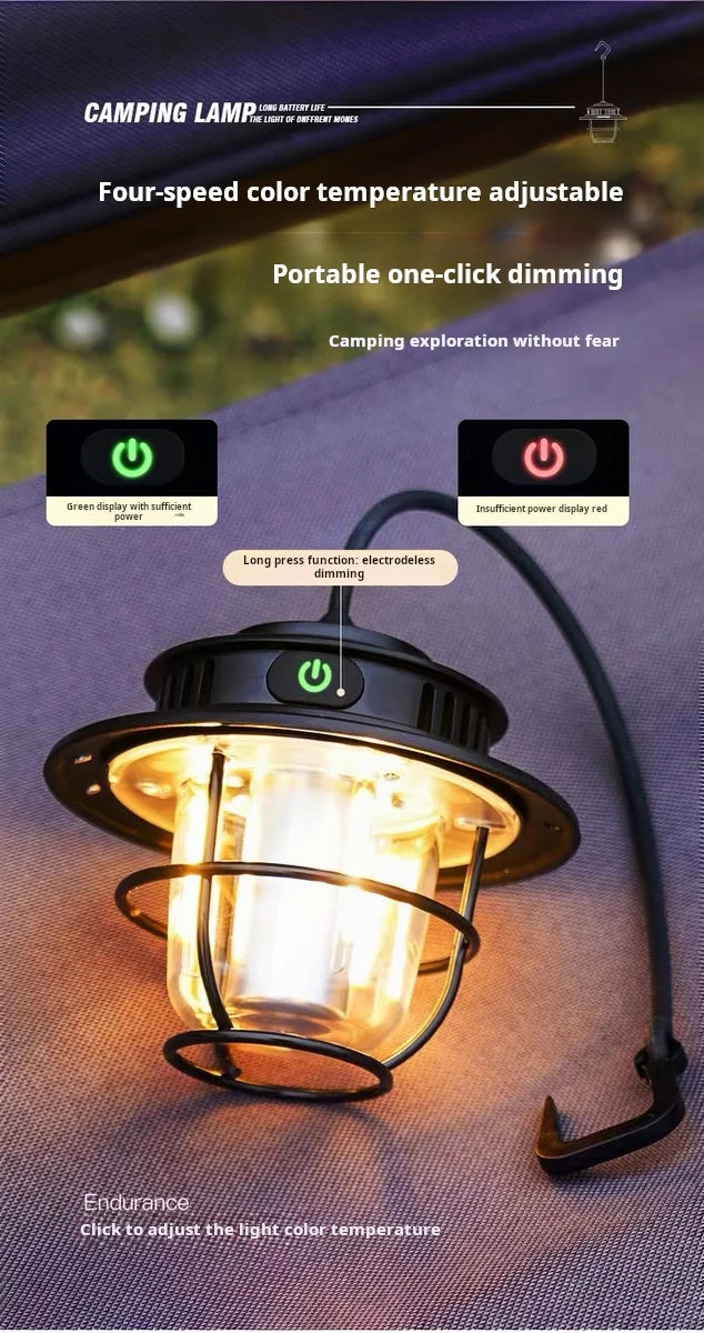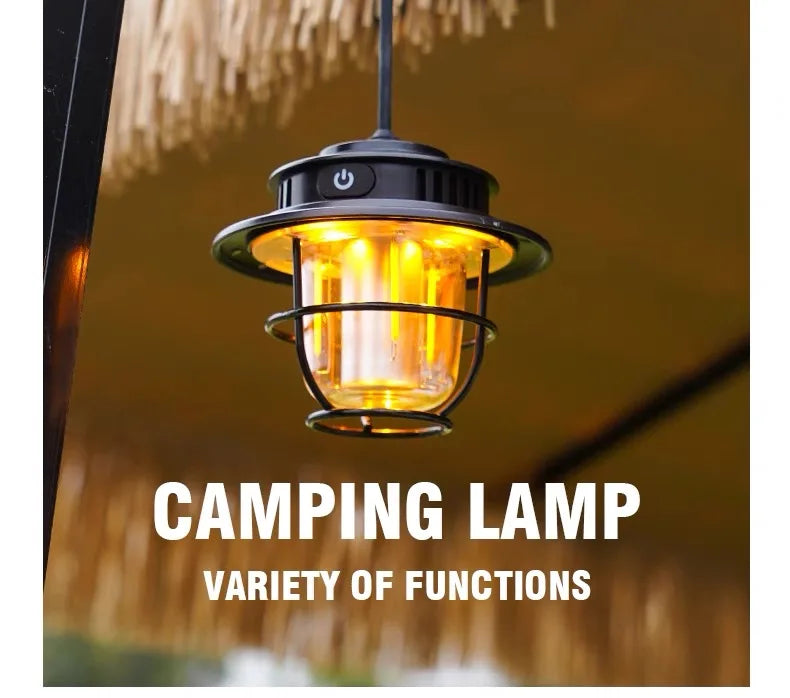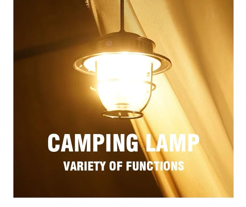 The Retro LED Waterproof Rechargeable Hanging Lamp is the perfect accessory for your next camping trip. With its waterproof design and rechargeable battery, it's perfect for outdoor use. Use it as a hanging lantern for hands-free lighting and enjoy its retro LED design.